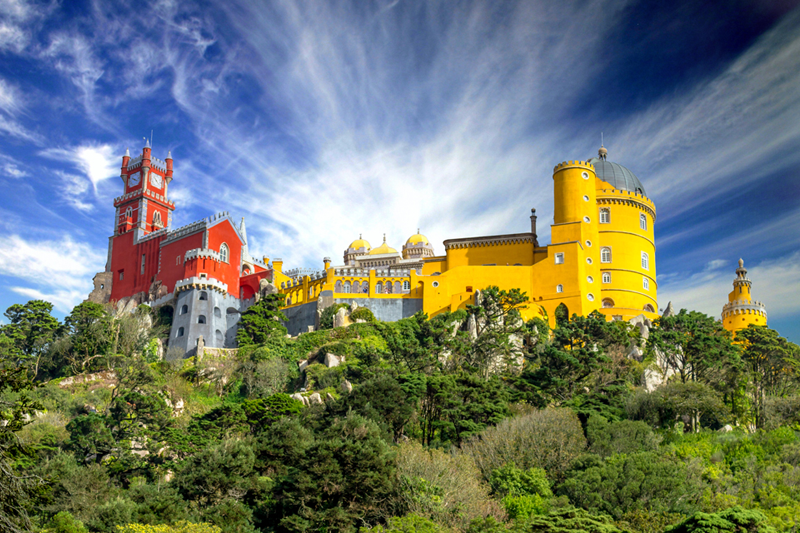 Um fascinante castelo de conto de fadas, localizado num dos picos mais altos da serra de Sintra. O Palácio propriamente dito é constituído por duas alas: o antigo convento manuelino da Ordem de São Jerónimo e a ala edificada no século XIX por D. Fernando II. D. Fernando transformou um antigo mosteiro numa residência acastelada de influências românticas.